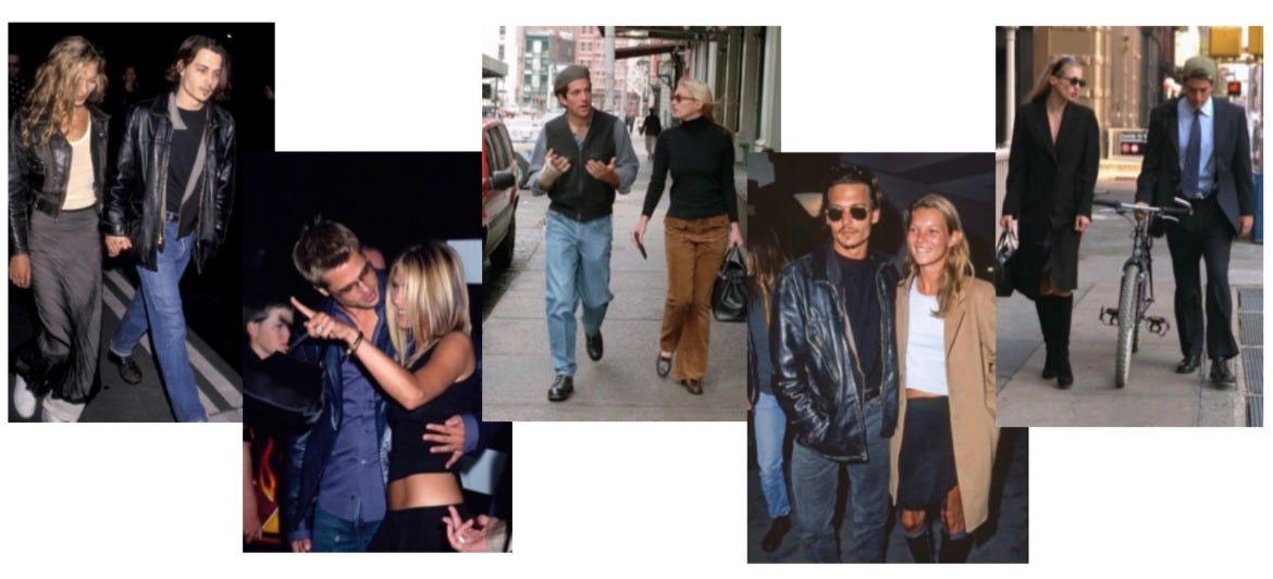 like everyone else i’ve been watching love story and pinning dozens of pictures of carolyn bessette kennedy and john f. kennedy jr. but i’ve also been drawing a lot of inspiration from photos of 90s couples in general. i love the distinctly 90s mix of grunge and minimalism. like a beat up biker jacket thrown over a sleek silk dress.
