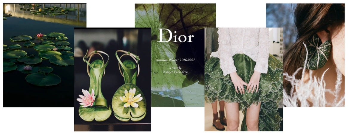 GORLRLRLLRLRLRL OH MY GOD THIS IS ONE OF THE BEST IDEAS EVERRRRR UR DRAGGING ME OUT OF MY SUBSTRACK HIATUS W THIS ONE !!!!!!!!!!! (i will be stealing hehehehhehehehhe) as a professional doom scroller too who desperately needs a place to channel all that content this is literally PERFECT. and of course your smexy genius mind is the one that came up with it !!!!!!!!!!! i love everything you mentionedddd and it’s funny cause literally every time i see a pink haired girlie i think of you and we never even talked about that (i want to own a pink wig instead of dying it cz i did it once and i regretted it instantly sjsbsbsbjs) the dusty pink + silver is literally your signature color combo so obviously it belongs here & THE GIUSEPPE SANDALS YASSSSS i saw a girl wearing them on a night out a few days ago and i was droooolinnnnngggggg. the urge to respectfully snatch them off her feet and take them w me was so high sjshsjjs they’re so so cool and chic and so you !!! the colored tights duh !!! i loooove the water lilies mention here omg i can’t wait to discuss the collection further w u !!! everything here is painfully on brand and fits you so perfectly i’m obsessed. man i always say this but your posts genuinely deserve magazine spreads people are STARVINGGGGG for this kind of fun fresh content and you deliver it effortlessly every single time !!! thank you for blessing me on this random wednesday and injecting some inspiration and motivation into my veins. I LOVE YOU SO MUCH MY HUNNY BUNNY SUNSHINE FAVORITE BLONDIE PEARL GIRL 👩🏼❤️💋👩🏽🫀