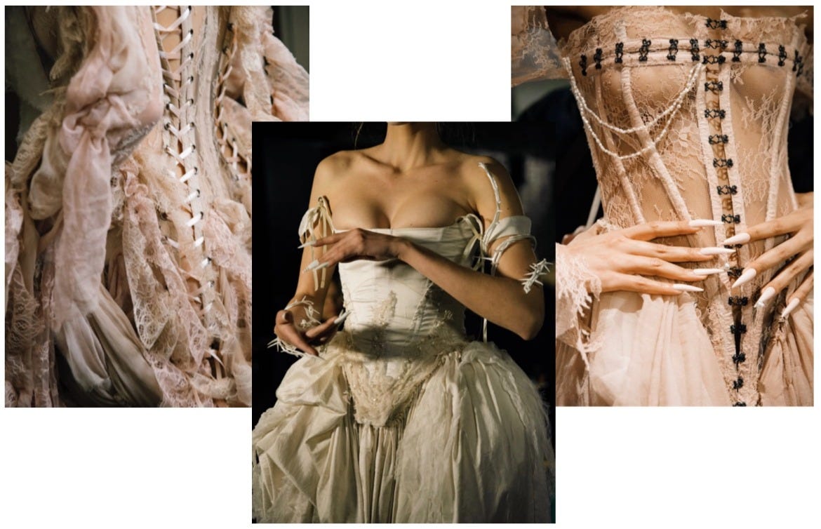 another collection i’m in love with is the dreaming eli a/w 2016, “the court of the maddest, merriest things alive:” it’s giving debauched courtesan sipping champagne at versailles, it’s giving disgraced former socialite, it’s giving angela carter’s gothic fairytales meets anaïs nin’s erotic short stories. i’m obsessed with the opulence of it. the distressed lace, the shredded silk, the sheer fabrics, the corsets, the shoes (!!!).